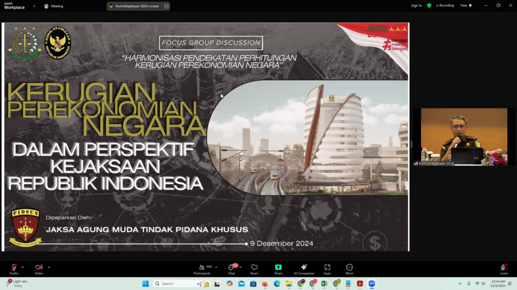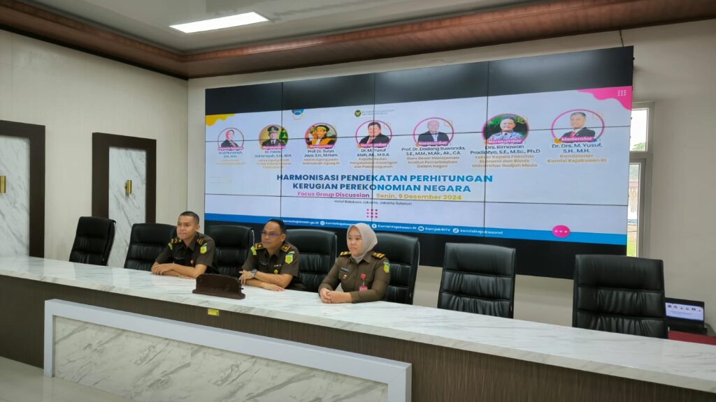 Pada hari Senin, 9 Desember 2024, Kejaksaan Negeri Tapin mengikuti kegiatan Focus Group Discussion (FGD) dengan tema “Harmonisasi Pendekatan Perhitungan Kerugian Perekonomian Negara” yang dilaksanakan melalui Zoom Meeting yang diadakan oleh Komisi Kejaksaan Republik Indonesia. Kegiatan tersebut diikuti oleh Kepala Sub Bagian Pembinaan Bapak Firman, S.H. dan Staf Bidang Tindak Pidana Khusus.