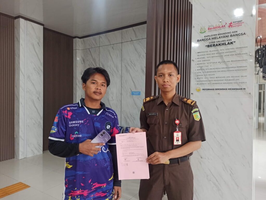 Pada hari Senin, 23 September 2024 pukul 11.00 di kantor Kejaksaan Negeri Tapin, Seksi Pemulihan Aset dan Pengelolaan Barang Bukti telah melaksanakan kegiatan Pengembalian Barang Bukti berupa 1 (satu) buah Handphone merek Oppo tipe A18 warna biru muda.