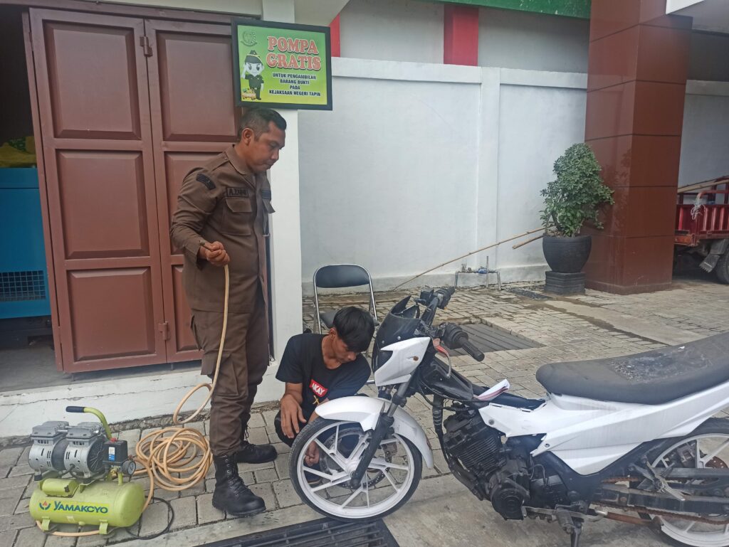 Pada hari Selasa, 20 Agustus 2024 pukul 14.30 di kantor Kejaksaan Negeri Tapin, Seksi Pengelola Barang Bukti dan Barang Rampasan telah melaksanakan kegiatan Pengembalian Barang Bukti berupa 1 (satu) buah Sepeda motor Merk Suzuki Satria F warna Putih tanpa Nomor Polisi, Nomor Rangka 1XU191A dan Nomor Mesin G420-1D859869;