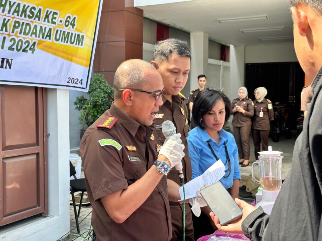 Pada hari Kamis, 18 Juli 2024 pukul 10.00 dikantor Kejaksaan Negeri Seksi Pengelola Barang Bukti dan Barang Rampasan telah melaksanakan kegiatan Pemusnahan Barang Bukti perkara Tindak Pidana Umum. Sebanyak 99 (Sembilan Puluh Sembilan) perkara antara lain: