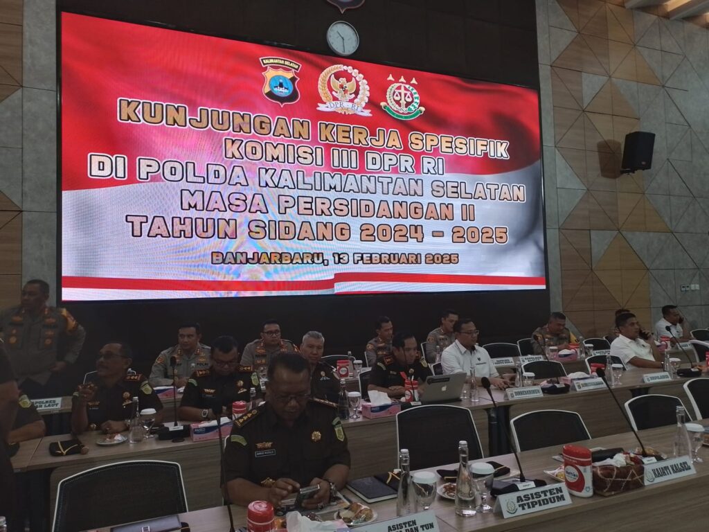 Pada hari Kamis, tanggal 13 Februari 2025 Kepala Kejaksaan Tinggi Kalimantan Selatan Ibu Rina Virawati, S.H., M.H. didampingi oleh seluruh Kepala Kejaksaan Negeri di Wilayah Kalimantan Selatan telah mengikuti Kunjungan Kerja Spesifik Komisi III DPR RI Masa Persidangan II Tahun Sidang 2024 – 2025 yang bertempat di Polda Kalimantan Selatan.