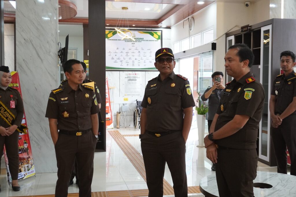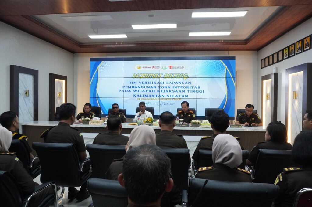 The WBK and WBBM Assessment Team, namely the Head of the Planning Bureau, Mr. Tiyas Widiarto, S.H., M.H., Head of the Evaluation and Internalization Sub-Division of the Bureaucratic Reform Program, Mr. Akbar Ismail, S.H., M.H., First Expert Planner at the Planning Bureau, Rizky Aditya Putra, S.M. and the Vice Chief of the South Kalimantan High Prosecution Office, Mr. Yudi Triadi, S.H., M.H.