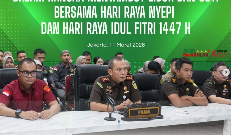 Pada hari Rabu, 11 Maret 2026, Kepala Kejaksaan Negeri Tapin, Bapak Mochamad Fitri Adhy, S.H., M.H., bersama para Kepala Seksi (Kasi), Kepala Subbagian (Kasubbag), serta seluruh jajaran Kejaksaan Negeri Tapin mengikuti kegiatan yang diselenggarakan oleh Jaksa Agung Muda Intelijen. Kegiatan ini dilaksanakan dalam rangka menyambut periode Libur dan Cuti Bersama Hari Raya Nyepi serta Hari Raya Idul Fitri 1447 Hijriah.