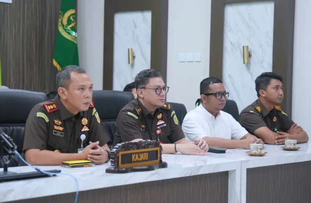 Pada hari Rabu, 08 April 2026, Kepala Kejaksaan Negeri Tapin, Bapak Mochamad Fitri Adhy, S.H., M.H., bersama para Kepala Seksi (Kasi) serta jajaran Jaksa di lingkungan Kejaksaan Negeri Tapin mengikuti kegiatan Seminar Nasional dengan tema “Komersialisasi Hak Cipta Lagu dan Merek Dalam Perspektif Penegakan Hukum”. Kegiatan ini dilaksanakan secara virtual melalui platform Zoom Meeting dan diikuti secara bersama-sama dari Aula Kejaksaan Negeri Tapin.
