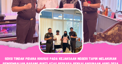 Pada hari Rabu, 21 Mei 2025, telah dilaksanakan Monitoring dan Evaluasi Bidang Perdata dan Tata Usaha Negara Kejaksaan Negeri se-Kalimantan Selatan Semester I Tahun 2025 yang dipimpin langsung oleh Asisten Perdata dan Tata Usaha Negara Kejaksaan Tinggi Kalimantan Selatan, Bapak Ahmad Muchlis, S.H., M.H. yang dilaksanakan secara daring. Kegiatan tersebut dihadiri oleh Kepala Kejaksaan Negeri Tapin, Bapak Arya Wicaksana, S.H., M.H., didampingi Kepala Seksi Perdata dan TUN Kejaksaan Negeri Tapin, Bapak Jesfry Agustinus Nadapdap, S.H., M.H. beserta jajaran yang dilaksanakan melalui Zoom di Aula Kantor Kejaksaan Negeri Tapin.
