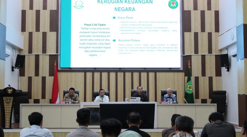 Tapin, 04 September 2025 – Kejaksaan Negeri Tapin melaksanakan kegiatan Penyuluhan dan Penerangan Hukum dengan tema: “Pencegahan Tindak Pidana Korupsi dalam Pengelolaan Keuangan Daerah” yang bertempat di Aula Tamasa, Kantor Bupati Tapin. Kegiatan ini dihadiri oleh Kepala Kejaksaan Negeri Tapin, Bapak Arya Wicaksana, S.H., M.H., yang didampingi oleh Kasi Intelijen, Kasi Pidsus, Kasubbag Bin, Kasubsi Datun, Kasubsi Intelijen, serta para staf pada Kejaksaan Negeri Tapin. Peserta kegiatan adalah para Kepala Satuan Kerja Perangkat Daerah (SKPD) di lingkungan Pemerintah Kabupaten Tapin. Hadir pula Bupati Tapin, Wakil Bupati Tapin, Sekretaris Daerah Kabupaten Tapin, serta para Kepala SKPD se-Kabupaten Tapin.